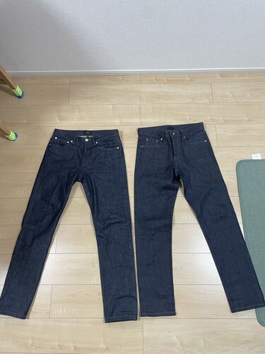 A.P.C.のプチニュースタンダード、ユニクロのストレッチセルビッジスリムフィットジーンズ、2つのジーンズの比較です。